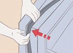 1. Legg tommelen under tetningen, den beste metoden er å starte i hjørnet. Ta tak i bunnen av den på siden, og trekk pakningen tilbake