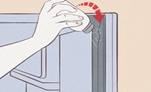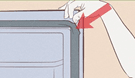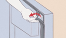 1. Ta den nye pakningen, slik at den begynner i de øverste hjørnene på kjøleskapsdøren. Skyv leppen på den nye pakningen inn i kanalen mellom hjørnene og arbeid deg rundt døren. Før du monterer de nederste hjørnene og passer mellom. Arbeid jevnt på toppen og deretter bunnen til midten for å spre overflødig jevnt på den lengste delen av tetningen.