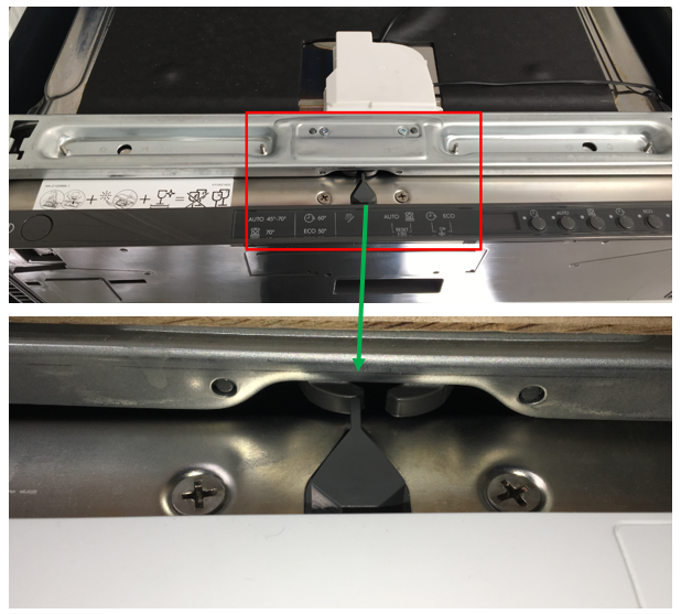 2. Åpne døren litt og bøy forsiktig toppen av oppvaskmaskinen slik at diamanten er på nivå med låsen (se illustrasjon nedenfor).