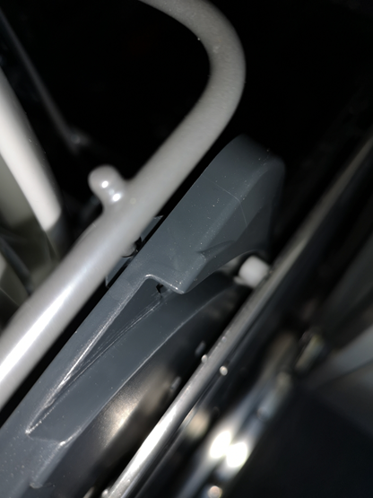 - Om den gråhvite styrepinnen har kommet ut av posisjon, kan man bøye mekanismen ut slik at den blir på plass igjen, bilde venstre