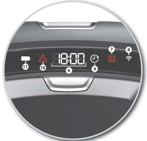 - Hvis wifi-symbolet (8) på robotens skjerm blinker, er ikke roboten koblet til nettverket.