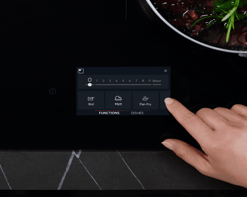 2. Trykk på den nedre eller øvre glidekontrollen på venstre side for å angi hvilken matlagingssone du skal bruke.