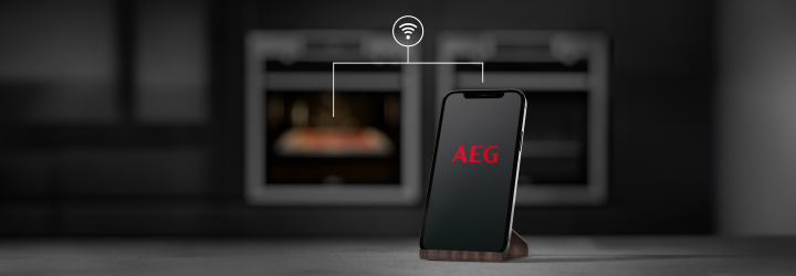 Koble telefonen til ovnens Wi-Fi via AEG-appen. Ikke lukk appen mens du kobler til. Det kan ta opptil ett minutt å koble til produktet. Når du er koblet til, vil displayet på ovnen din varsle deg om at Wi-Fi er klart.