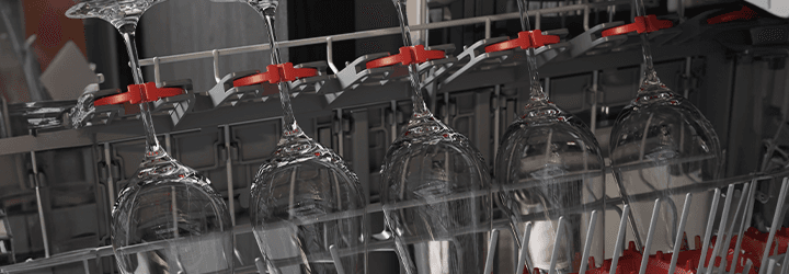 Slik rengjør du ømtålige glass i en AEG-oppvaskmaskin med SoftGrips og SoftSpikes. Gummien på SoftSpikes beskytter stettene på glassene dine og forhindrer riper og skader. For ekstra stabilitet holder SoftGrips et fast grep om stettene til vin- og cocktailglassene slik at de står sikkert under hele programmet.