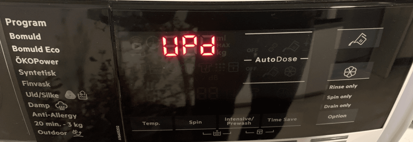 - Vaskemaskinen viser UPd i displayet når vaskeprogrammet er over