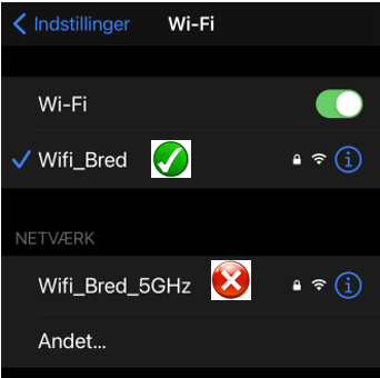 Sørg for at du har en 2,4Ghz WiFi-tilkobling koblet til hjemmenettverket med god signalstyrke .Hvis du har valgt et 5Ghz-nettverk, kan du ikke fullføre WiFi-tilkoblingen eller bruke produktet via wifi-tilkobling. Hvis telefonen eller nettbrettet er koblet til 5Ghz, gå til innstillinger og trykk glem nettverk slik at den ikke kobles automatisk til telefonen/nettbrettet igjen. Eksempel: